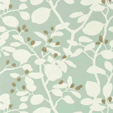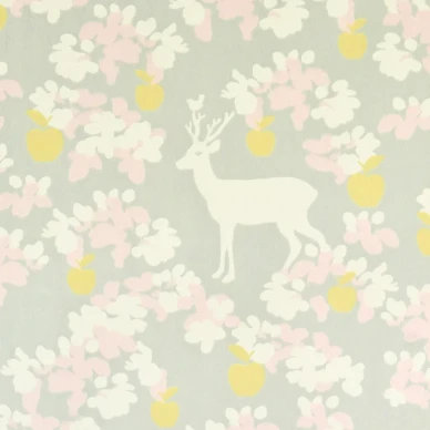 Majvillan tapet Little Light till med en vit kanin och blommor. En fin barnrumstapet.