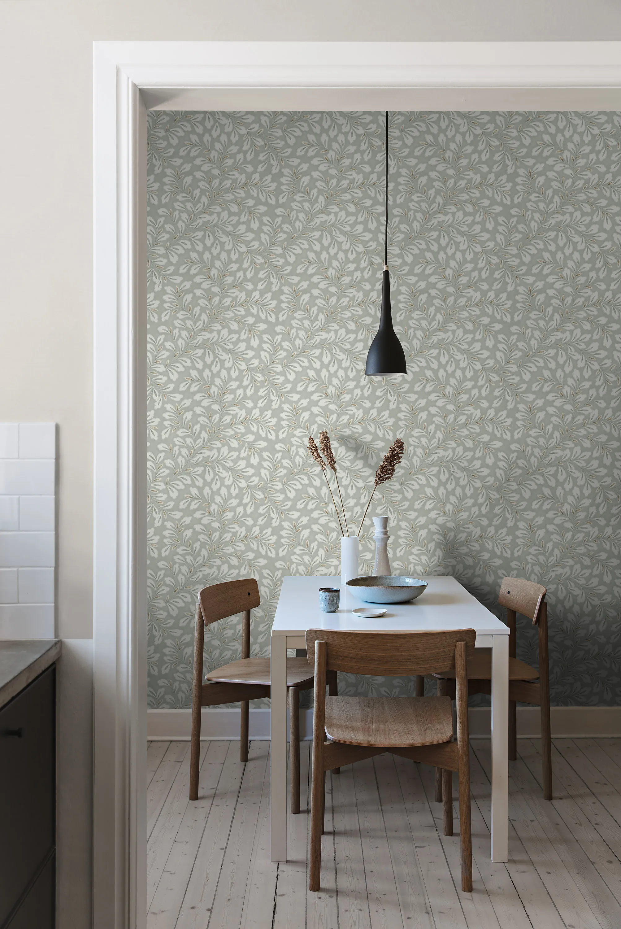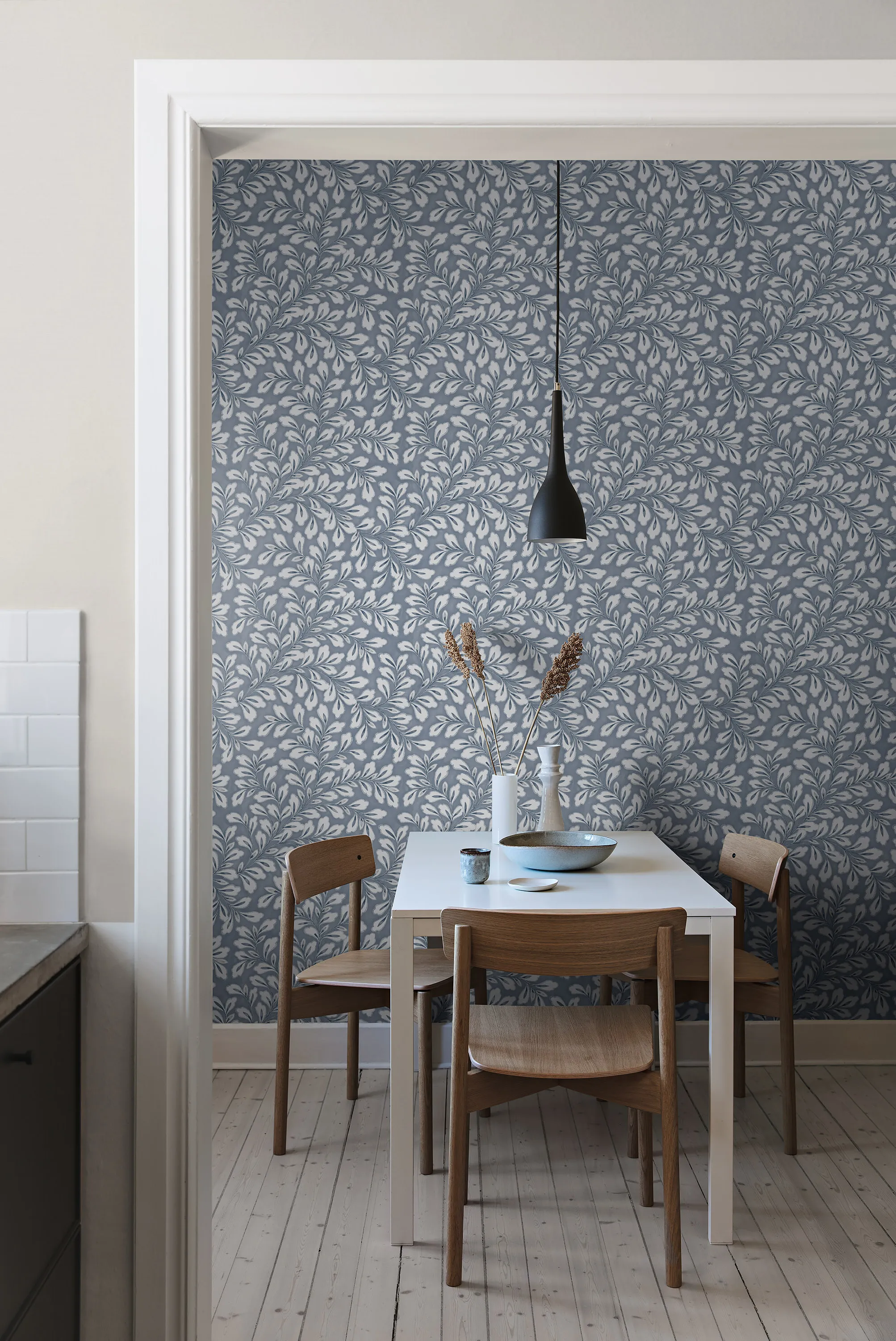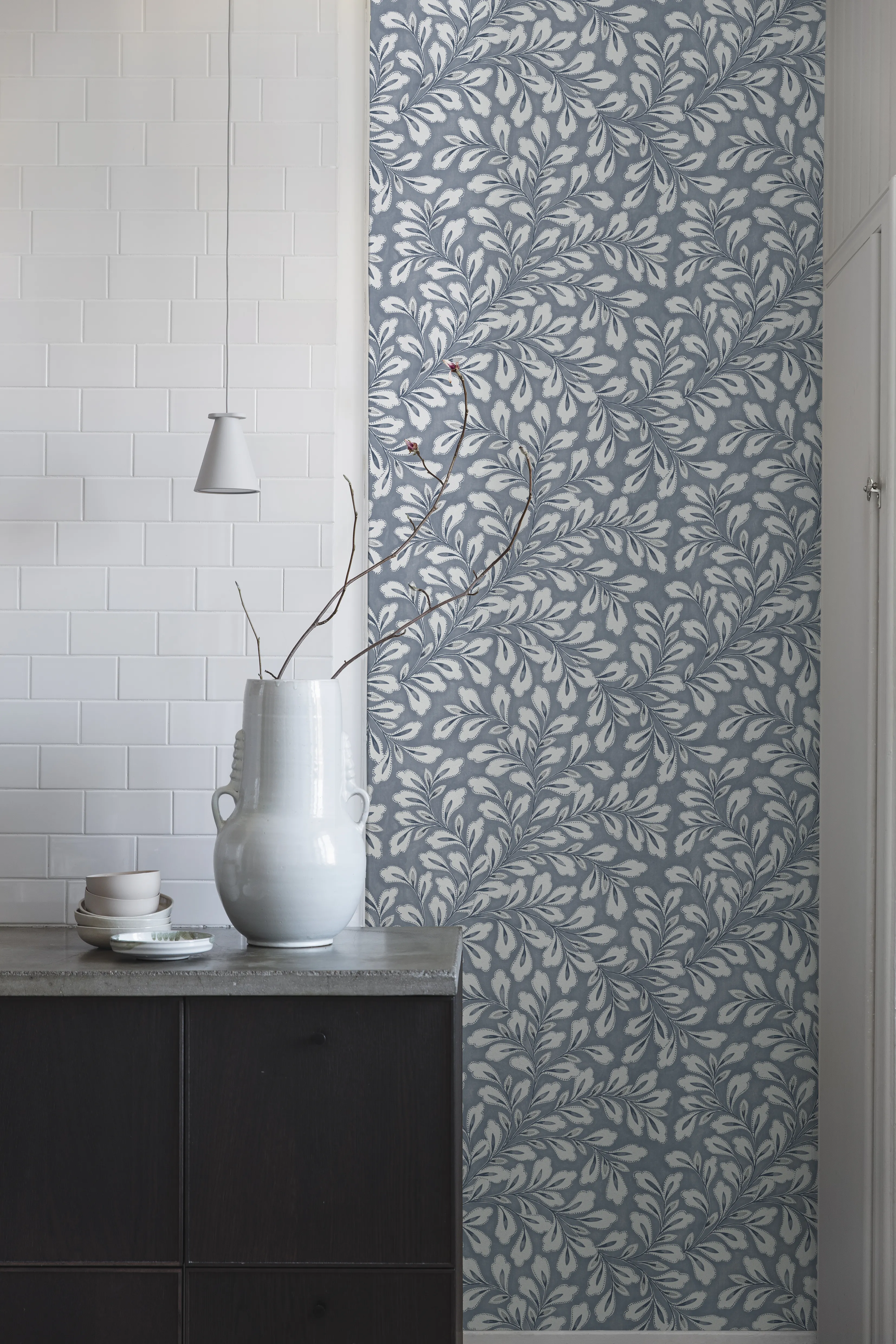 Boråstapeters bladtapet Liv har ett tätt, böljande mönster i folkloristisk stil. Den hemtrevliga tapeten är perfekt som sovrumstapet, vardagsrumstapet, kökstapet eller barnrumstapet.