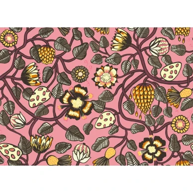 Boråstapeter Melodi är en färggrann non woven tapet från 1947. En spännande mönstertapet som avslöjer nya detaljer varje gång du tittar på den!