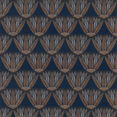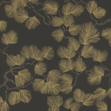Muraltapeten Opulence med ett stort och böljande grafiskt mönster skapar puls och ger en känsla av lyx. En guldkantad muraltapet till matsalen, sovrummet eller vardagsrummet.
