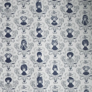 Medaljongtapeten Petrouchka från Cole & Son är lyxig med damaskmönster i sammet. Den dramatiska tapeten är en av Cole & Sons stjärnor. Tapeten passar bra som blickfång i vardagsrummet eller matsalen.