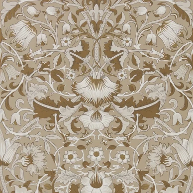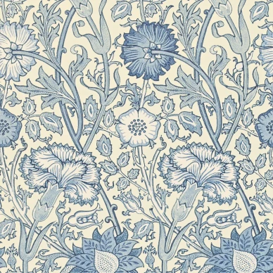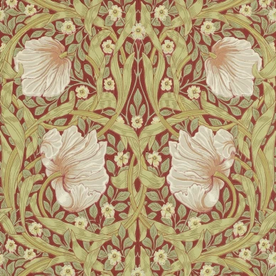 Blommiga tapeten Pimpernel från Morris är klassisk och tättmönstrad. Ett mönster som ofta beundras i designkretsar eftersom det är synnerligen välgjort. Tapeten designades redan 1876, och prydde William Morris väggar i matsalen på Kelmscott House, men passar väl i våra hem ännu idag.