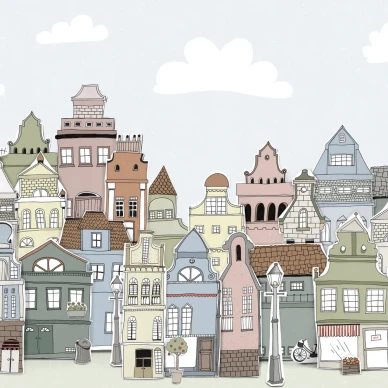 Muraltapeten Pink Facade avbildar en rosa fasad, och skapar känslan av att sitta utomhus fast du är inne. En annorlunda muraltapet till vardagsrum, hall eller hemmakontor.