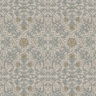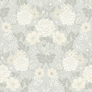 Blommiga fågeltapeten Pure Dove & Rose från Morris & Co har ett tätt, regelbundet mönster. Tapeten fås i tre ljusa färgalternativ och passar till exempel i matsalen eller i vardagsrummet.