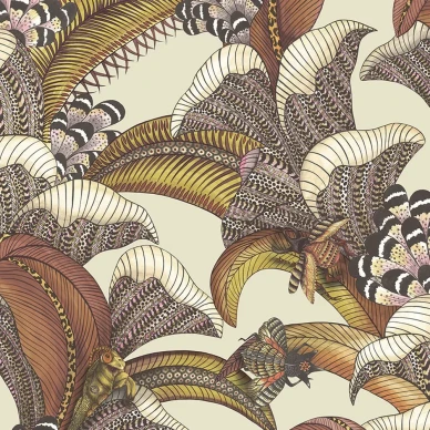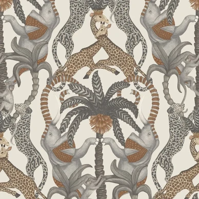 Djurtapeten Satara visar leopardmamman som beskyddar sina ungar bland träden. Inspirationen till mönstret kommer från Kruger nationalpark i Sydafrika. Tapeten fås både med skimmer (mica) och metallfärg. En exotisk sovrumstapet eller vardagsrumstapet.
