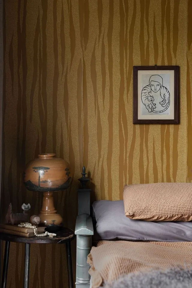 Savannah-tapeten från Studio Lisa Bengtsson är en levande tolkning av den klassiska randen – inspirerad av naturens kraft och djurisk elegans. Mönstret liknar en organisk rand som rör sig fritt över väggen, där rytmen är levande och inte helt symmetrisk, precis som i naturen.