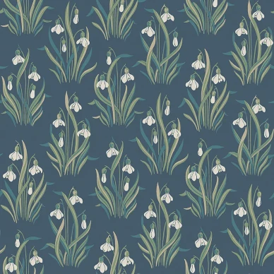Spring Garden är en storblommig tapet med tätt mönster. Här samsas tulpaner med liljekonvaljer, pärlhyacinter och gullvivor. Tapeten finns i tre färger.