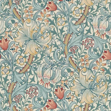 Blommiga tapeten Wandle från Morris & Co har ett levande, tätt mönster som böljar fram på väggen. Tapeten skapades på 1880-talet men står sig bra än idag. Tapeten passar i sovrum, matsal och vardagsrum. Den fås i fem färgalternativ.