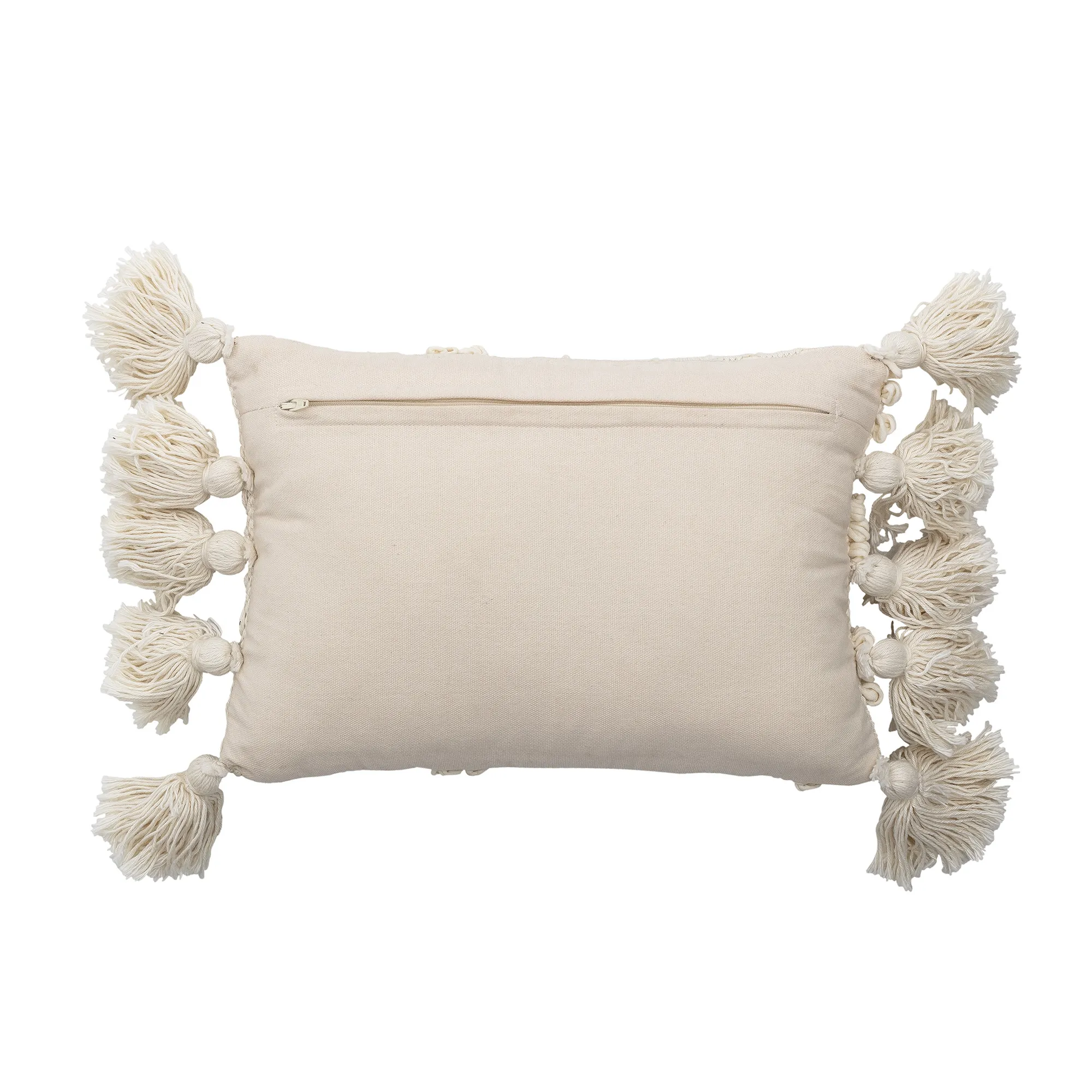 Prydnadskudden Inas Cushion i vitt med tofsar och mönster passar både moderna hem och bohemisk inredningsstil med mycket naturmaterial. En fin kudde till soffan, fåtöljen eller som prydnad på den bäddade sängen.