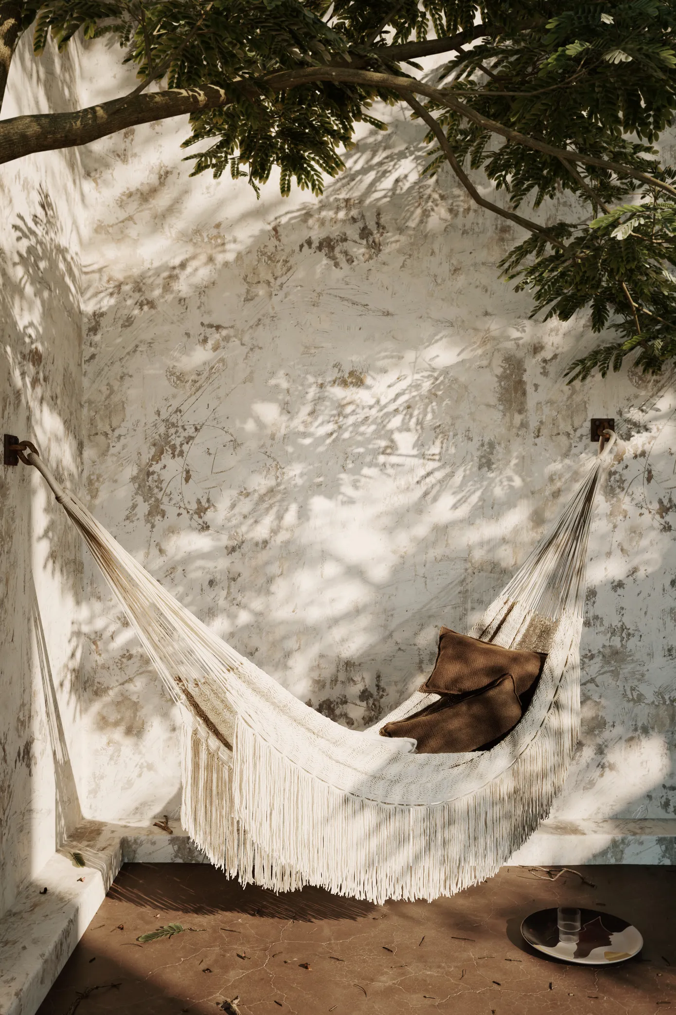 Hängmattan Path Hammock är tillverkad av återanvända plastflaskor som gjorts till PET-garn. Den hållbara hängmattan är perfekt för lata dagar utomhus på sommaren. 102 återanvända plastflaskor har använts vid tillverkningen.